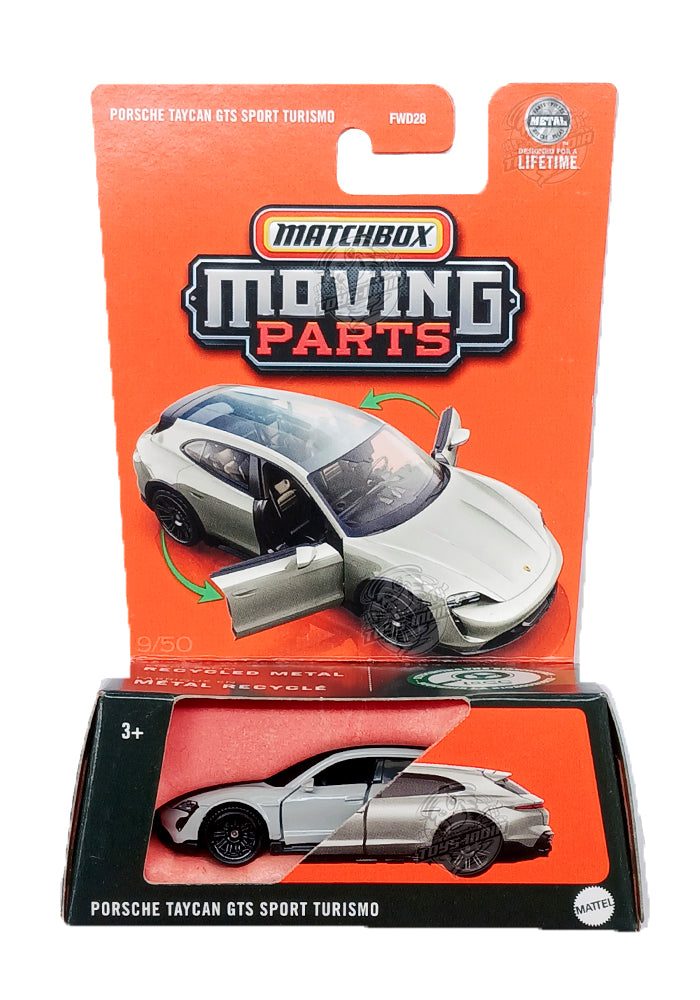 EXCLUSIVES Matchbox Moving Parts Porsche Taycan GTS Sport Turismo - Grey - 2024 Card