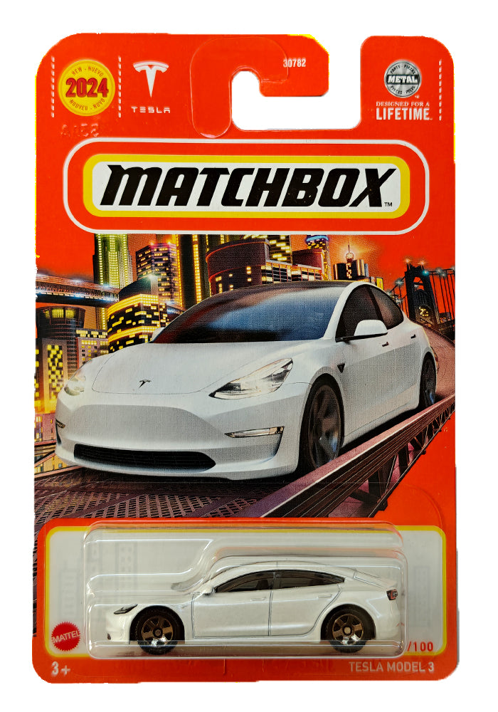 EXCLUSIVES Matchbox Tesla Model 3 - White - 2023 Card (With Protector Case)