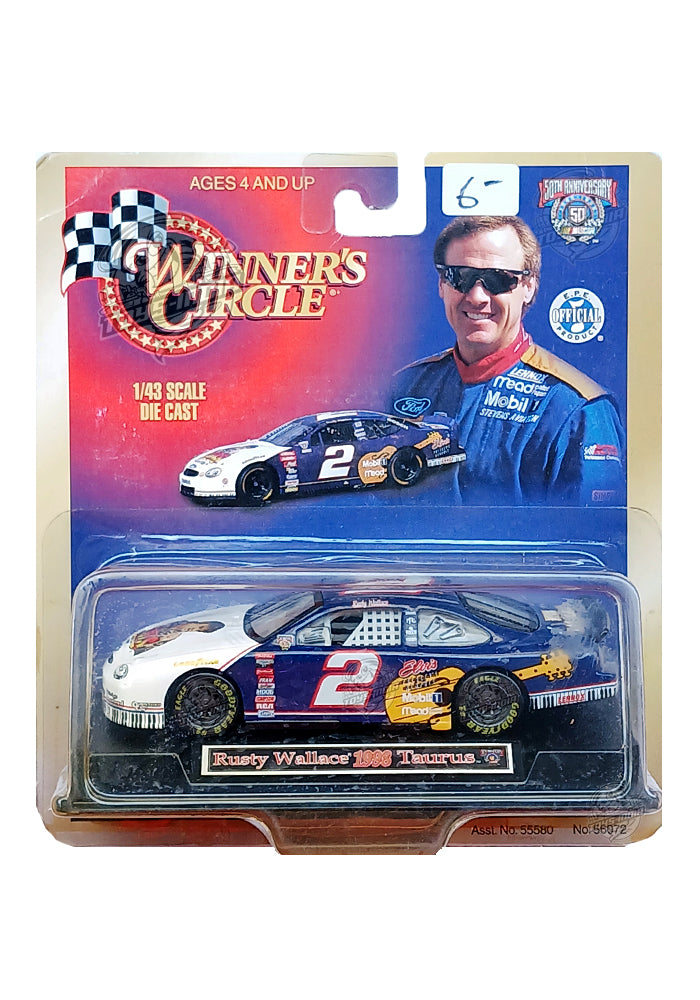 Exclusives Winners Circle NASCAR Rusty Wallace - Blue / White - 1998 Card (Blister Damage / Car in Excellent Condition) (Scale 1:43)