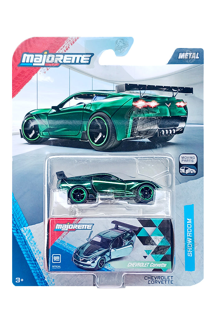 Majorette Showroom Cars Chevrolet Corvette - Green - 2025 Card (Moving Parts)