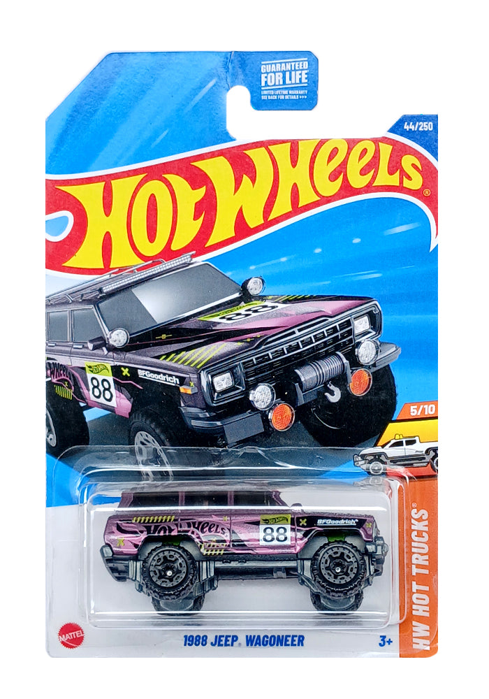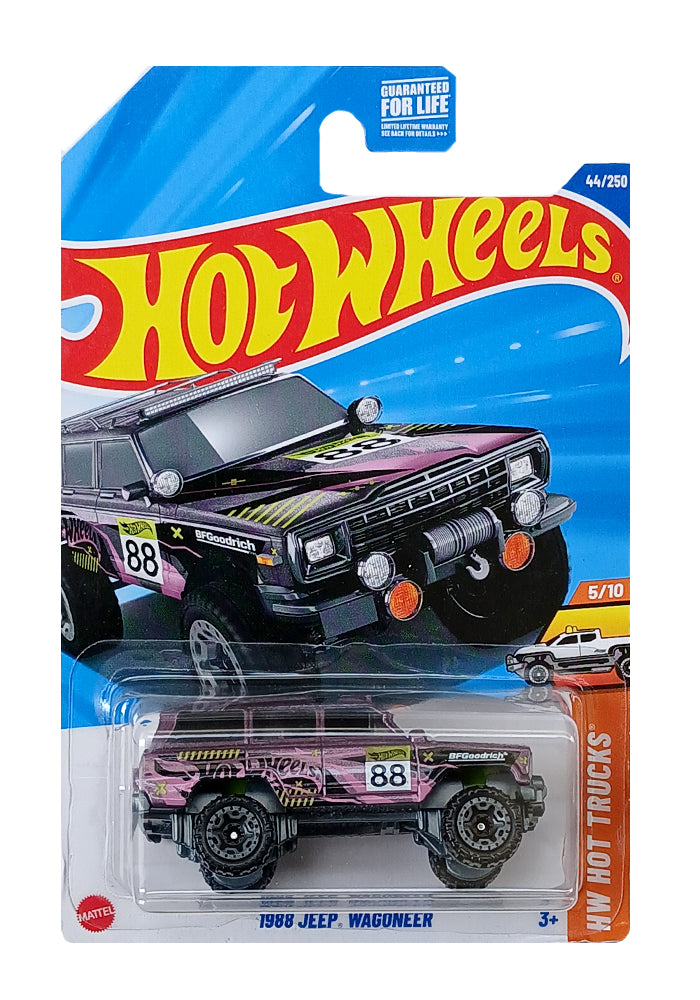 EXCLUSIVES Hot Wheels 1988 Jeep Wagoneer - Purple - 2024 Card (Blister Damage / Car in Excellent Condition) (With Protector Case)