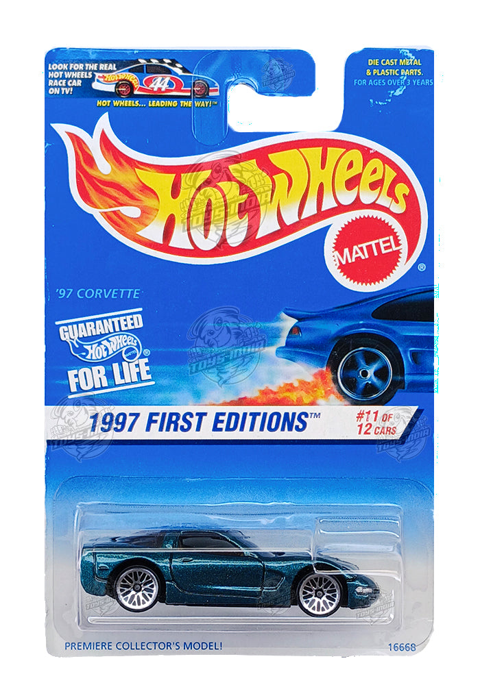 EXCLUSIVES Hot Wheels 1997 First Editions '97 Corvette - Green - 1997 Card (With Protector Case)