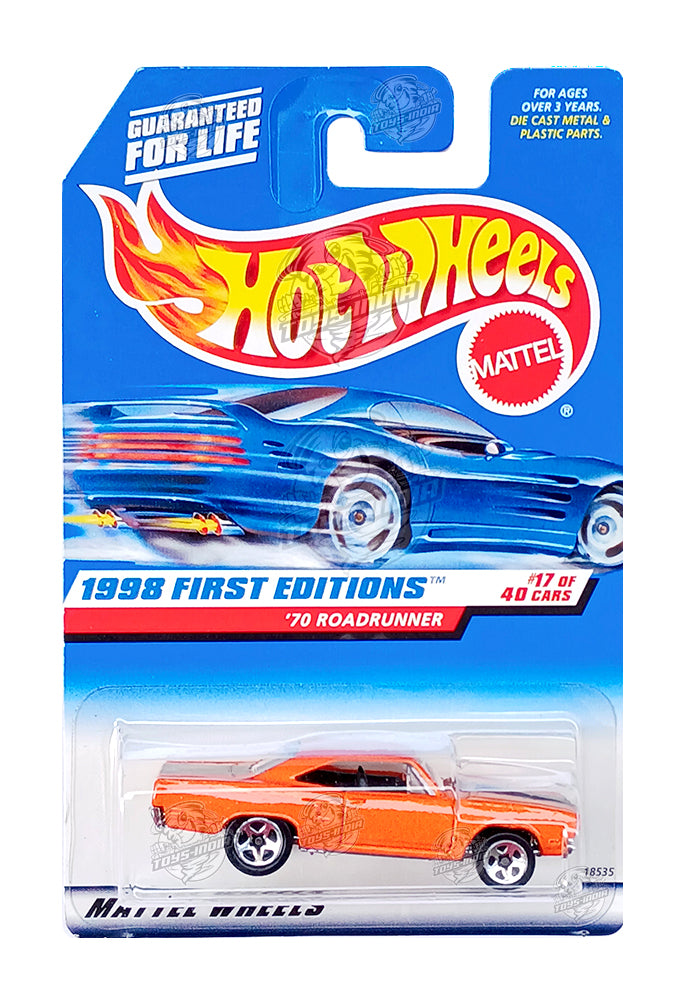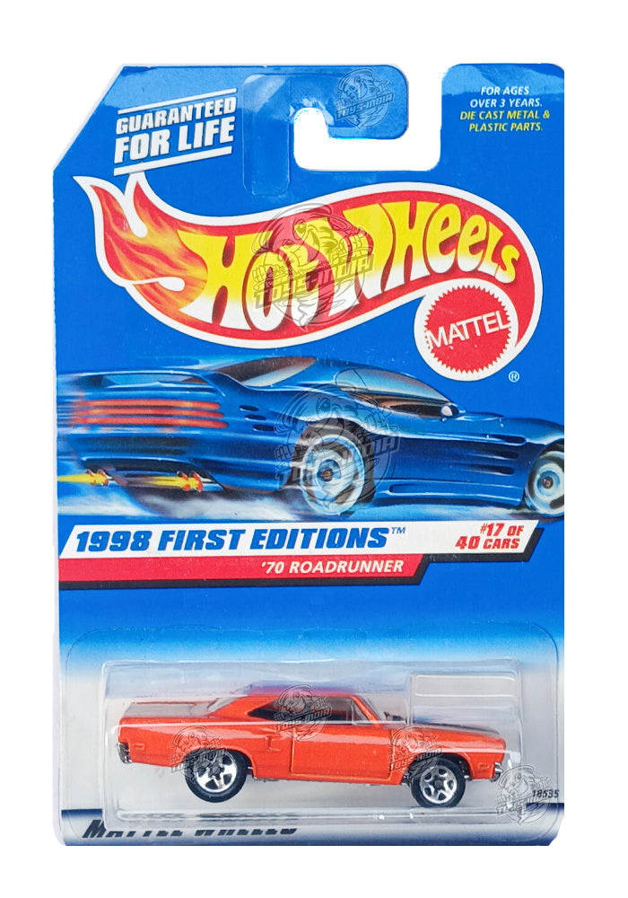 EXCLUSIVES Hot Wheels 1998 First Editions '70 Roadrunner - Orange - 1997 Card (With Protector Case)