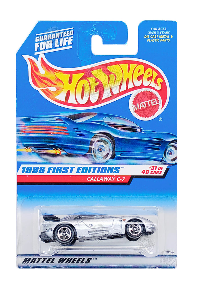 EXCLUSIVES Hot Wheels 1998 First Editions Callaway C-7 - Silver - 1997 Card (With Protector Case)