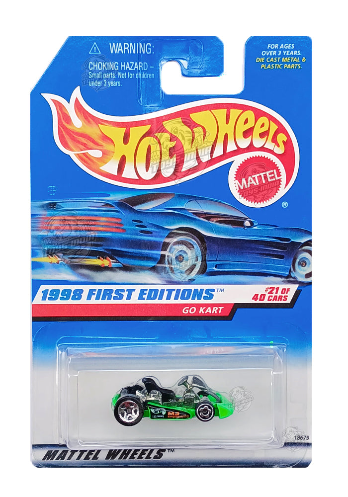 EXCLUSIVES Hot Wheels 1998 First Editions Go Kart - Green - 1997 Card (Blister Damage / Car in Excellent Condition) (With Protector Case)