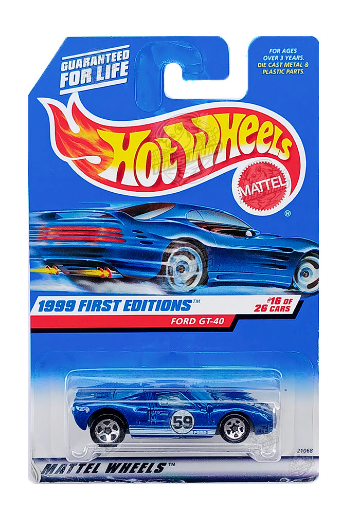 EXCLUSIVES Hot Wheels 1999 First Editions Ford GT-40 - Blue - 1998 Card (With Protector Case)
