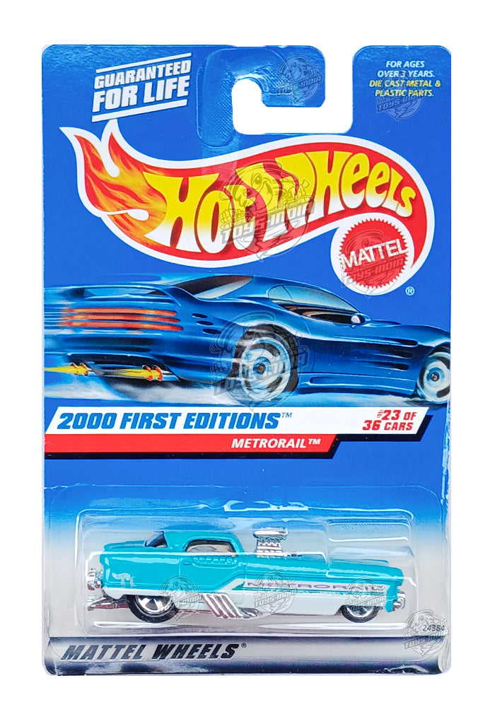 EXCLUSIVES Hot Wheels 2000 First Editions Metrorail - Green / White - 1999 Card (Blister Damage / Car in Excellent Condition) (With Protector Case)