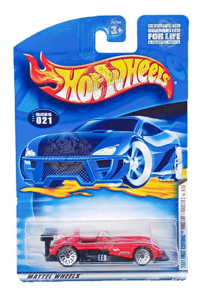 EXCLUSIVES Hot Wheels 2001 First Editions Panoz MLP-1 Roadster S - Red / Black - 2000 Card (With Protector Case)