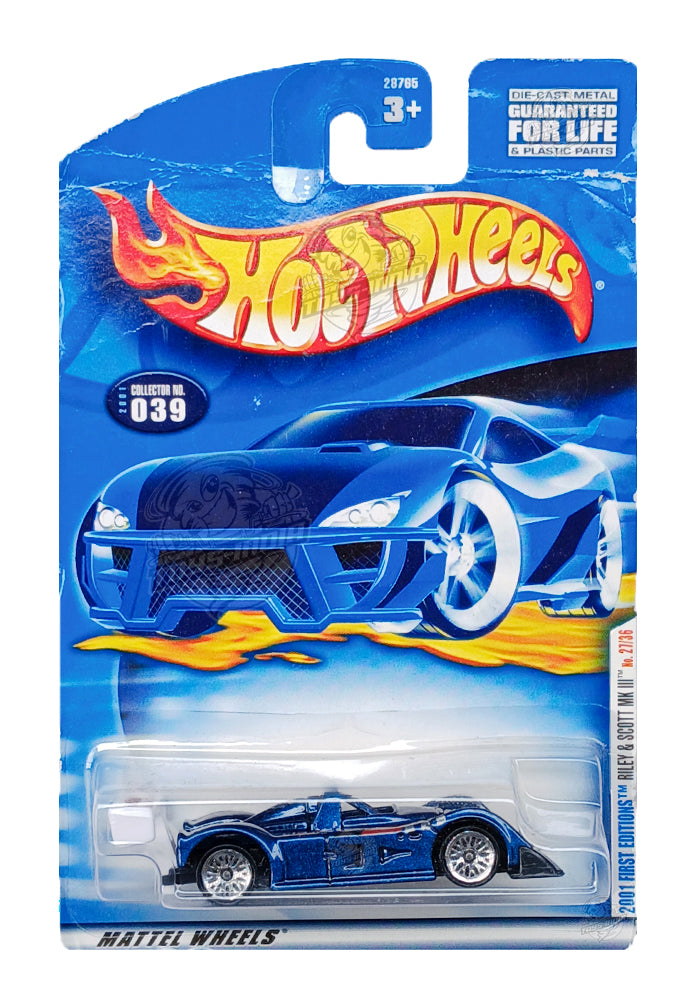 EXCLUSIVES Hot Wheels 2001 First Editions Riley & Scott MK III - Blue - 2000 Card (Creased Card / Car in Excellent Condition) (With Protector Case)