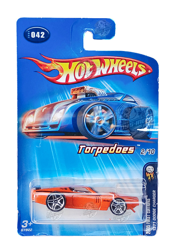 EXCLUSIVES Hot Wheels 2005 First Editions 1971 Dodge Charger - Orange - 2004 Card (With Protector Case)