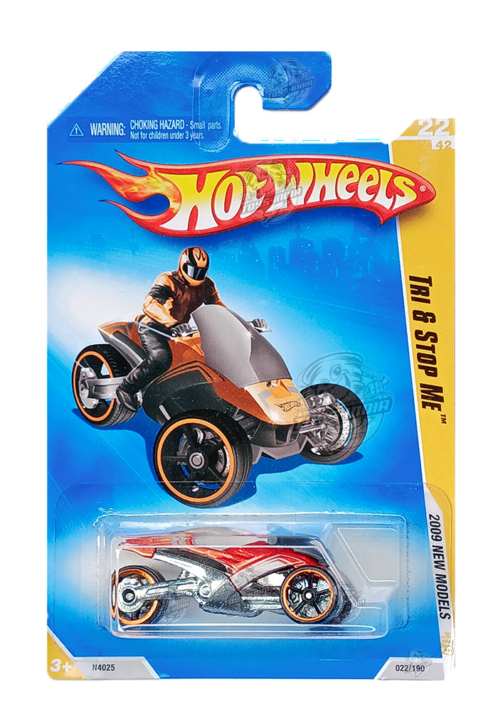 EXCLUSIVES Hot Wheels 2009 New Models Tri & Stop Me - Orange / Silver - 2008 Card (With Protector Case)