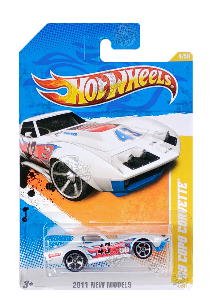 EXCLUSIVES Hot Wheels 2011 New Models '69 Copo Corvette - White / Red - 2010 Card (With Protector Case)