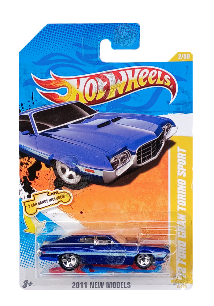 EXCLUSIVES Hot Wheels 2011 New Models '72 Ford Gran Torino Sport - Blue - 2010 Card (With Protector Case)