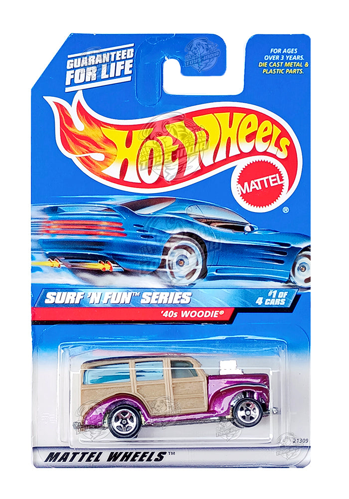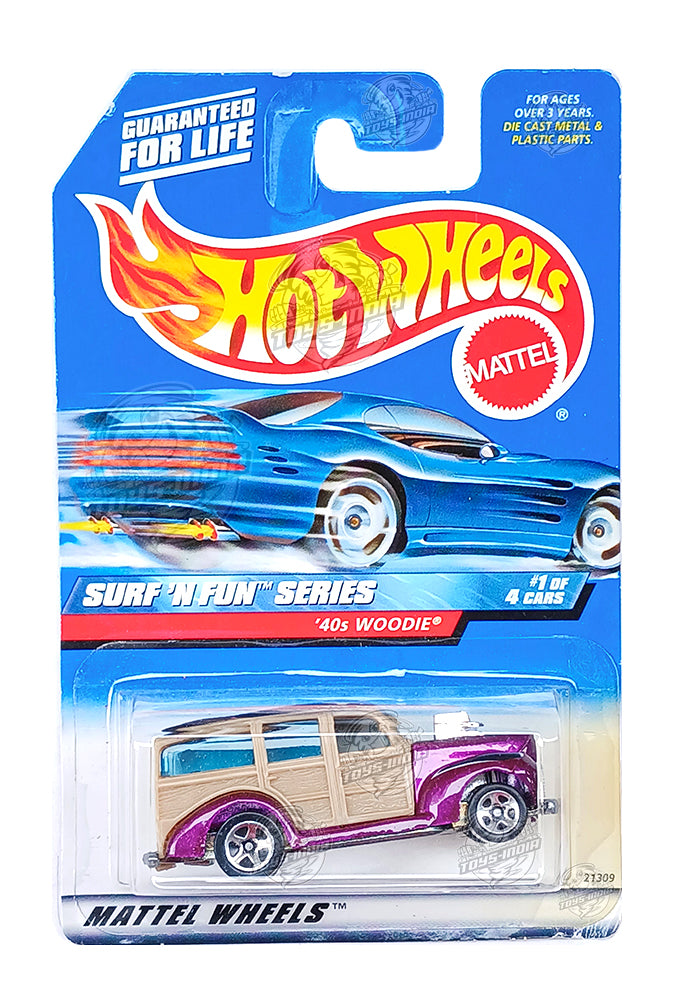 EXCLUSIVES Hot Wheels 40's Woodie - Purple / Beige - 1998 Card (With Protector Case)