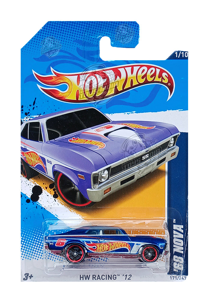 EXCLUSIVES Hot Wheels '68 Nova - Blue - 2011 Card (Creased Card / Car in Excellent Condition) (With Protector Case)