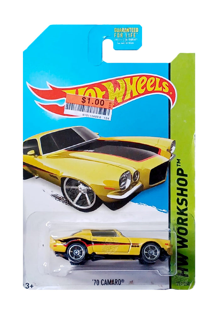 EXCLUSIVES Hot Wheels '70 Camaro - Yellow / Black - 2013 Card (With Protector Case)