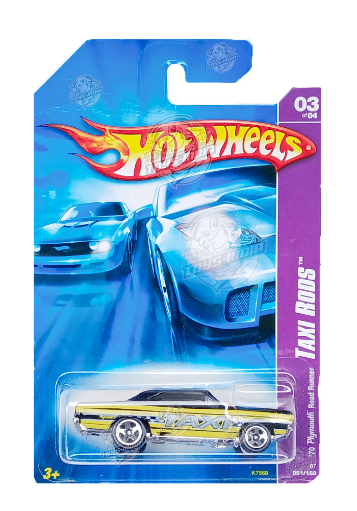 EXCLUSIVES Hot Wheels '70 Plymouth Road Runner - Black / Yellow - 2006 Card (With Protector Case) (Copy)