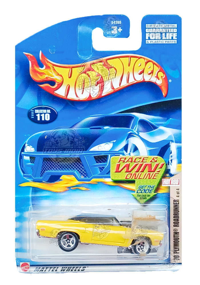 EXCLUSIVES Hot Wheels '70 Plymouth Roadrunner - Yellow - 2001 Card (With Protector Case)