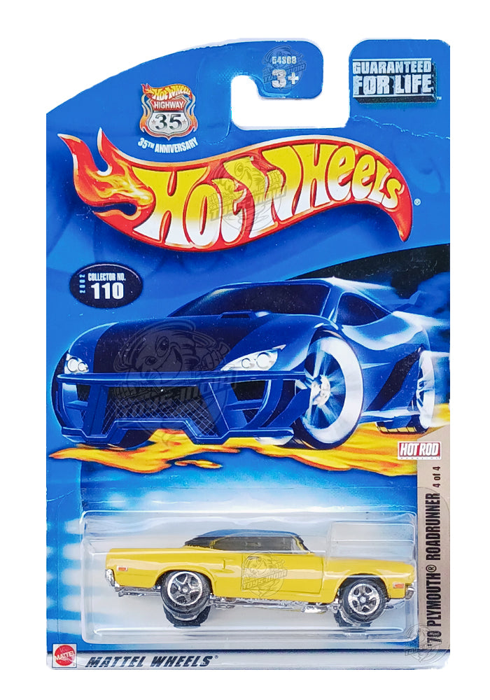 EXCLUSIVES Hot Wheels '70 Plymouth Roadrunner - Yellow - 2002 Card (With Protector Case)