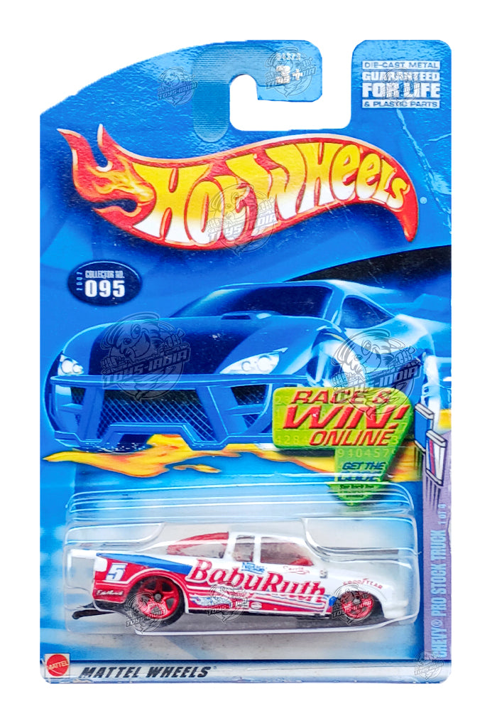 EXCLUSIVES Hot Wheels Chevy Pro Stock Truck - White / Red - 2001 Card (Creased Card / Car in Excellent Condition)(With Protector Case)