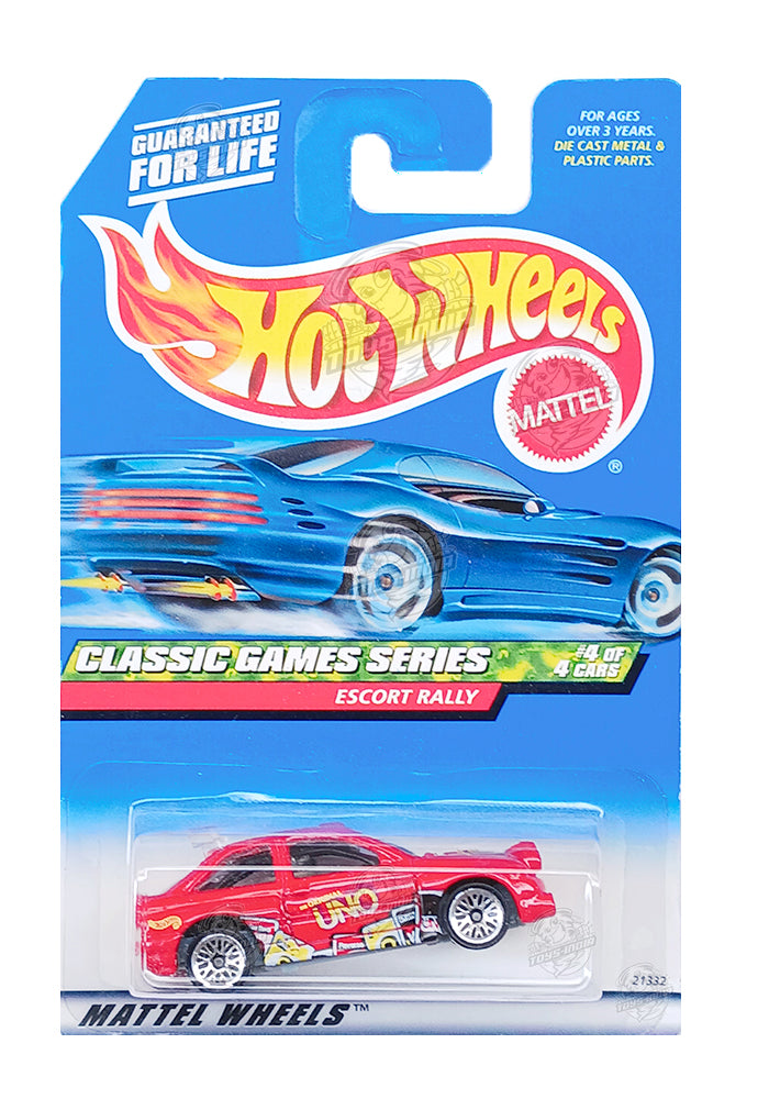 EXCLUSIVES Hot Wheels Classic Games Series UNO Escort Rally - Red - 1998 Card (With Protector Case)