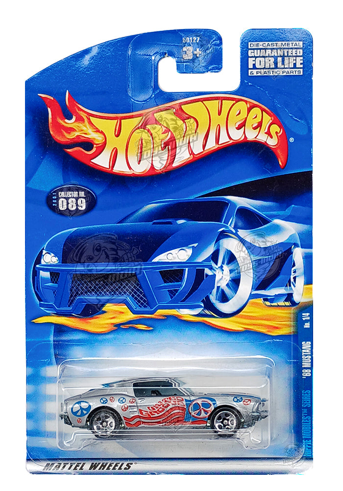 EXCLUSIVES Hot Wheels Custom '68 Mustang - Silver / Blue / Red - 2000 Card (With Protector Case)