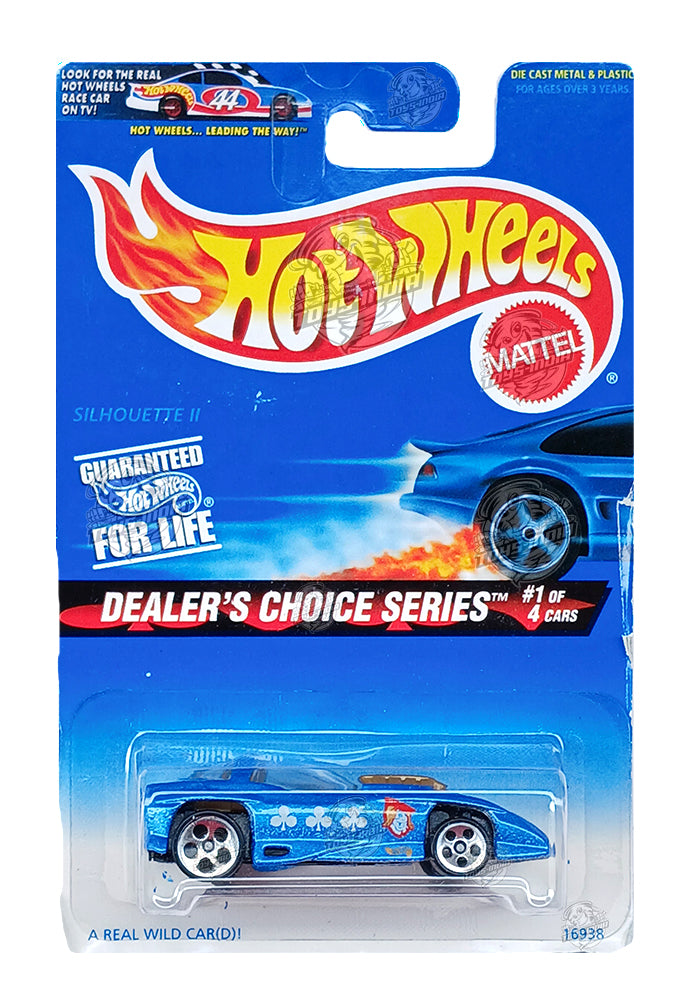 EXCLUSIVES Hot Wheels Dealers Choice Series Silhouette II - Blue - 1996 Card (Creased Card / Car in Excellent Condition) (With Protector Case)