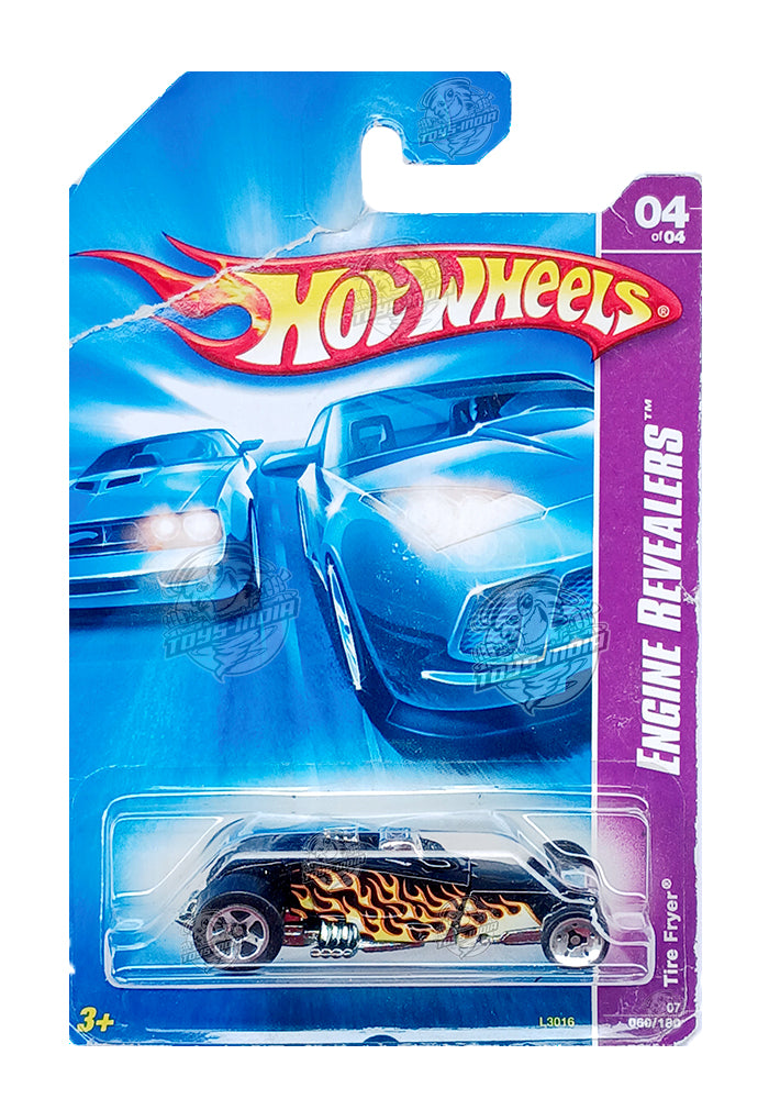 EXCLUSIVES Hot Wheels Engine Revealers Tire Fryer - Black - 2006 Card (Creased Card / Car in Excellent Condition) (With Protector Case)