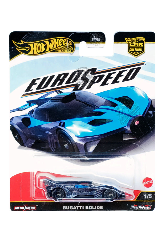 EXCLUSIVES Hot Wheels Euro Speed Bugatti Bolide - Black / Blue - 2025 Card (Creased Card / Car in Excellent Condition) (With Protector Case)