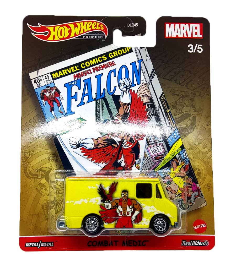 EXCLUSIVES Hot Wheels Marvel Avengers Falcon Combat Medic - Yellow / Red - 2020 Card