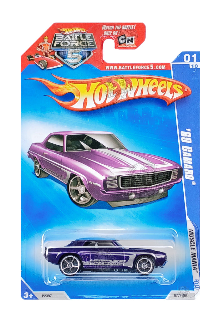 EXCLUSIVES Hot Wheels Muscle Mania '69 Camaro - Purple - 2008 Card (With Protector Case)