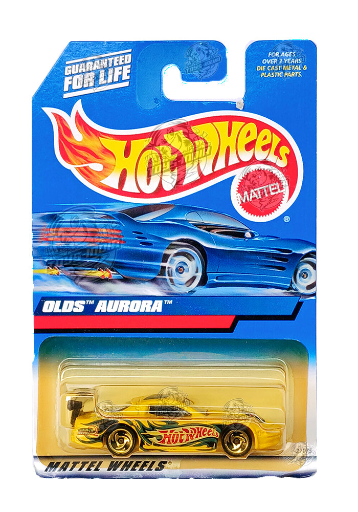 EXCLUSIVES Hot Wheels Olds Aurora - White / Blue - 1999 Card (Creased Card / Car in Excellent Condition) (With Protector Case)