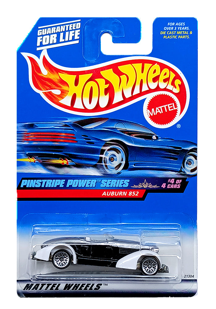 EXCLUSIVES Hot Wheels Pinstripe Power Series Auburn 852 - Black / White - 1998 Card (With Protector Case)