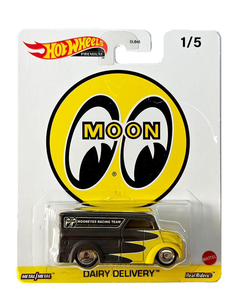 EXCLUSIVES Hot Wheels Premium Moon Eyes Dairy Delivery - Black / Yellow - 2023 Card