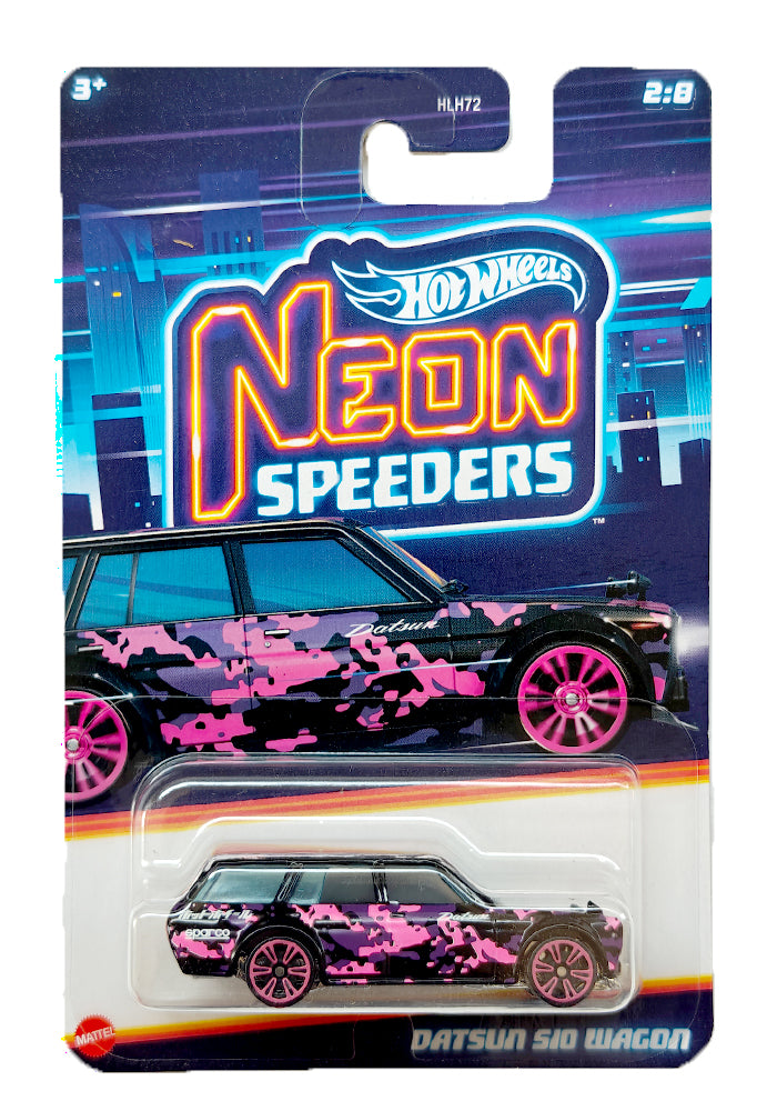 EXCLUSIVES Hot Wheels Premium Neon Speeders Datsun S10 Wagon - Black / Pink - 2022 Card (With Protector Case)