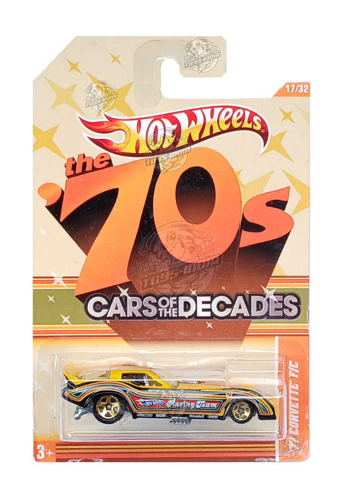 EXCLUSIVES Hot Wheels Premium The 70's Cars of the Decades '77 Corvette F/C - Yellow / Black - 2010 Card (With Protector Case)