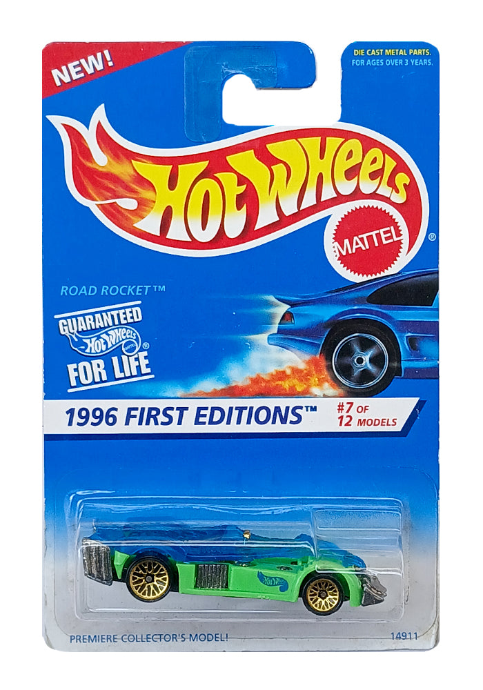 EXCLUSIVES Hot Wheels Road Rocket - Green / Blue - 1995 Card (With Protector Case)