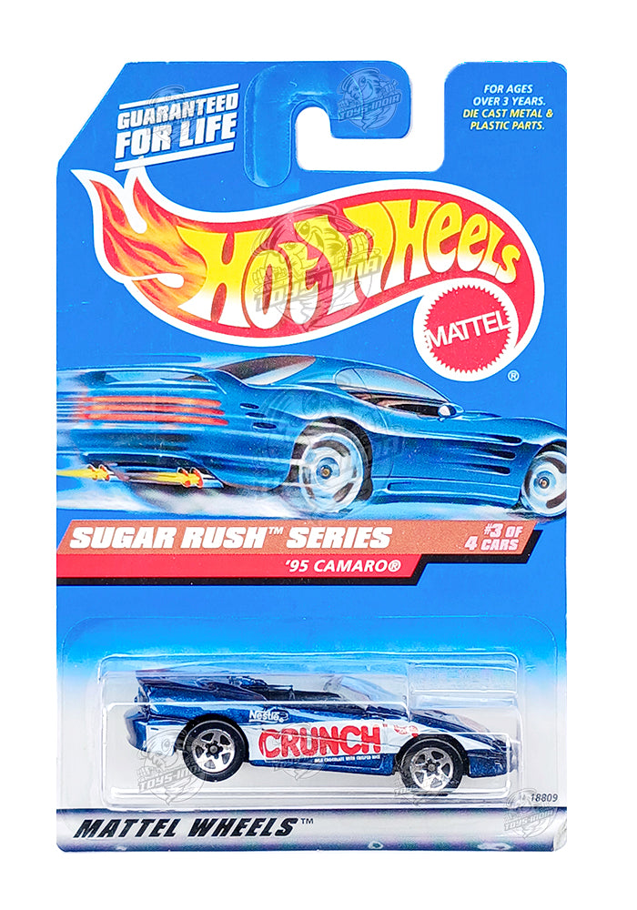 EXCLUSIVES Hot Wheels Sugar Rush Series Crunch '95 Camaro - Blue / White - 1997 Card (Blister Damage / Car in Excellent Condition) (With Protector Case)