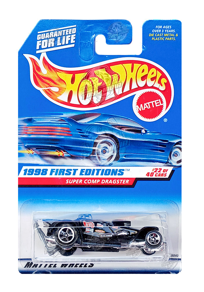 EXCLUSIVES Hot Wheels Super Comp Dragster - Black - 1997 Card (Blister Damage / Car in Excellent Condition) (With Protector Case)