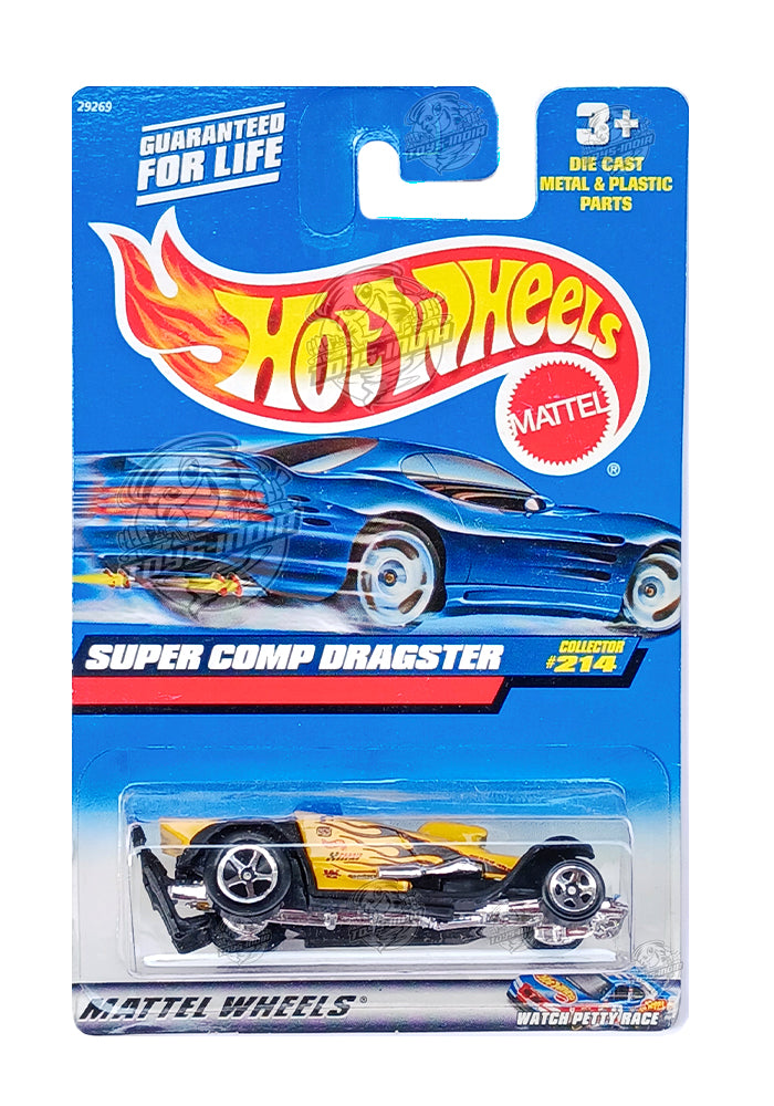 EXCLUSIVES Hot Wheels Super Comp Dragster - Yellow / Black - 1999 Card (With Protector Case)