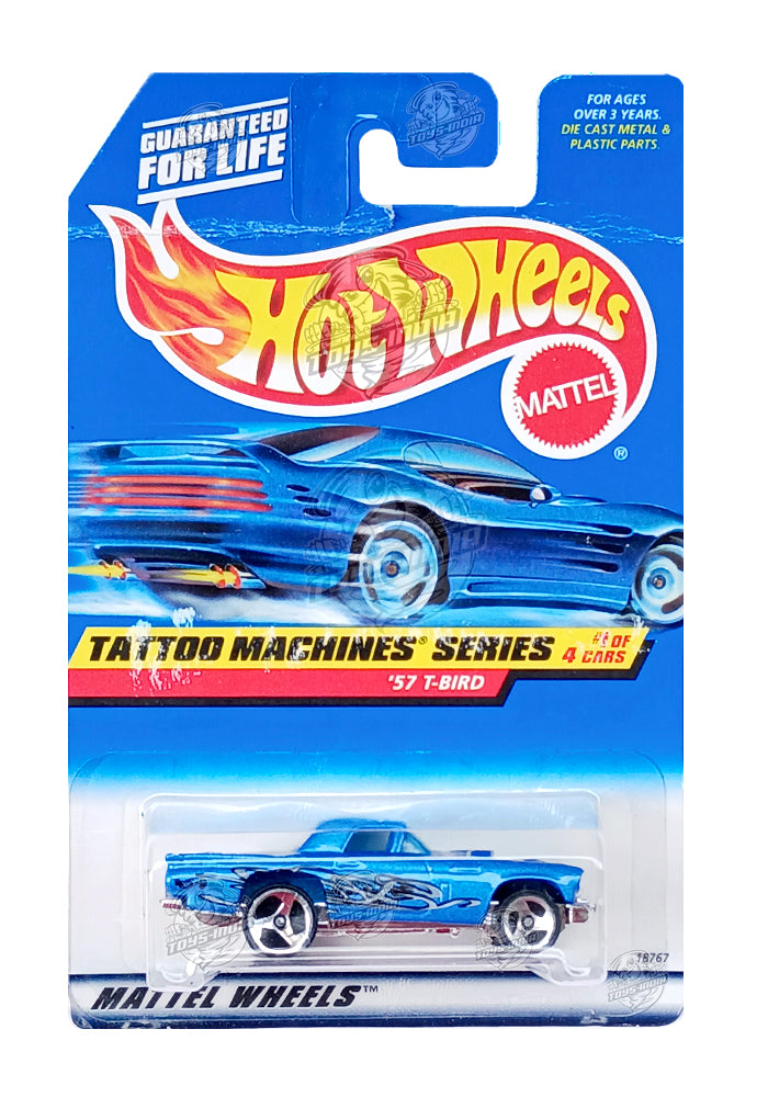 EXCLUSIVES Hot Wheels Tattoo Machine Series '57 T-Bird - Blue - 1997 Card (Creased Card / Car in Excellent Condition) (With Protector Case)
