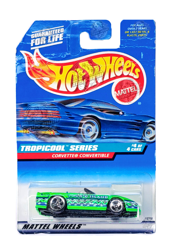 EXCLUSIVES Hot Wheels Tropicool Series Corvette Convertible - Green / Black - 1997 Card (Creased Card / Car in Excellent Condition) (With Protector Case)