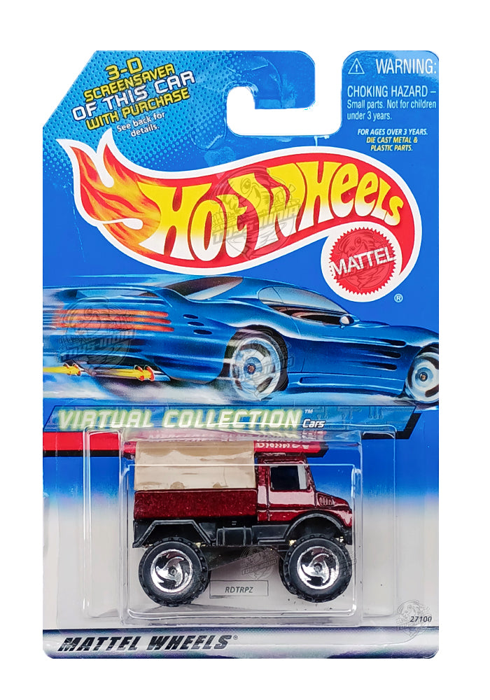 EXCLUSIVES Hot Wheels Virtual Collection Mercedes-Benz Unimog - Red / Beige - 1999 Card (Creased Card / Car in Excellent Condition) (With Protector Case)
