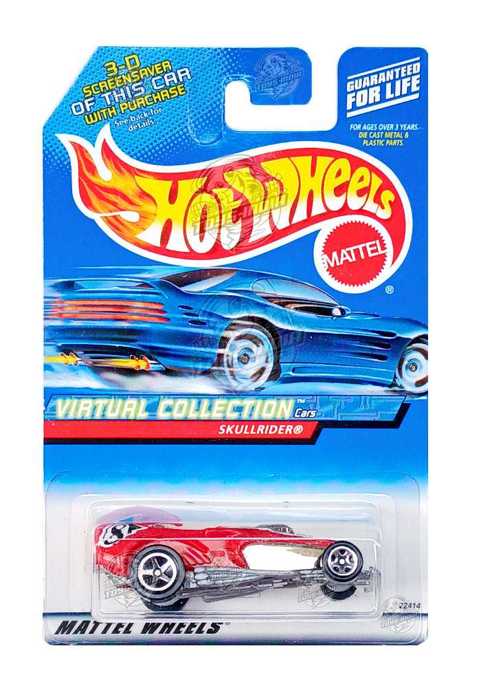 EXCLUSIVES Hot Wheels Virtual Collection Skullrider - Red / Silver - 1999 Card (With Protector Case)