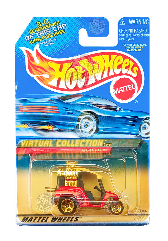 EXCLUSIVES Hot Wheels Virtual Collection Tee'd Off - Red / White - 1999 Card (Blister Damage / Car in Excellent Condition) (With Protector Case)