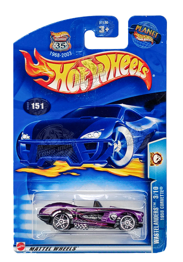 EXCLUSIVES Hot Wheels Wastelanders 1958 Corvette - Purple - 2002 Card (With Protector Case)