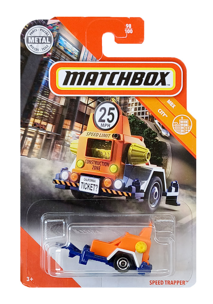 EXCLUSIVES Matchbox Speed Trapper - Orange / Blue - 2019 Card